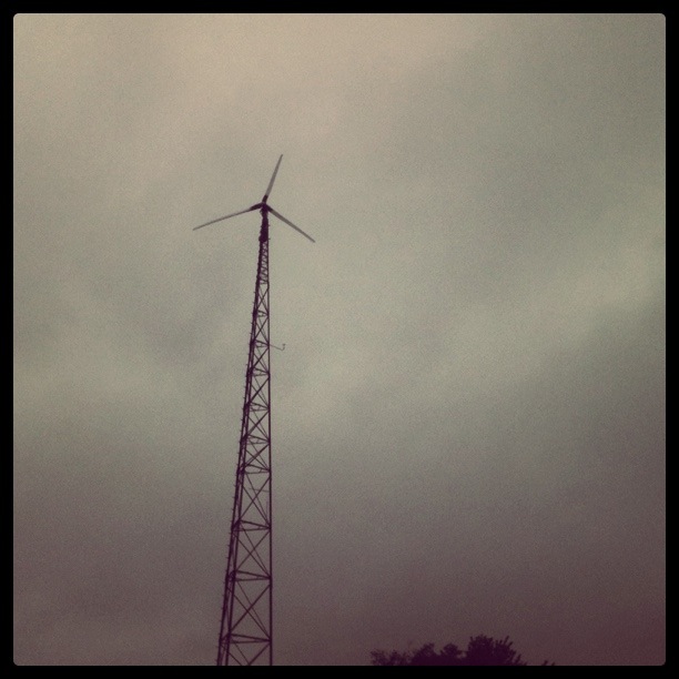 Last weekend, at the Midwest Renewable Energy Fair, I saw a couple of radio towers serving as wind turbines (like the one pictured above) and thought, ‘Well, that makes sense.’ There are already so many towers all over the world. Why not use them as sources of electricity?