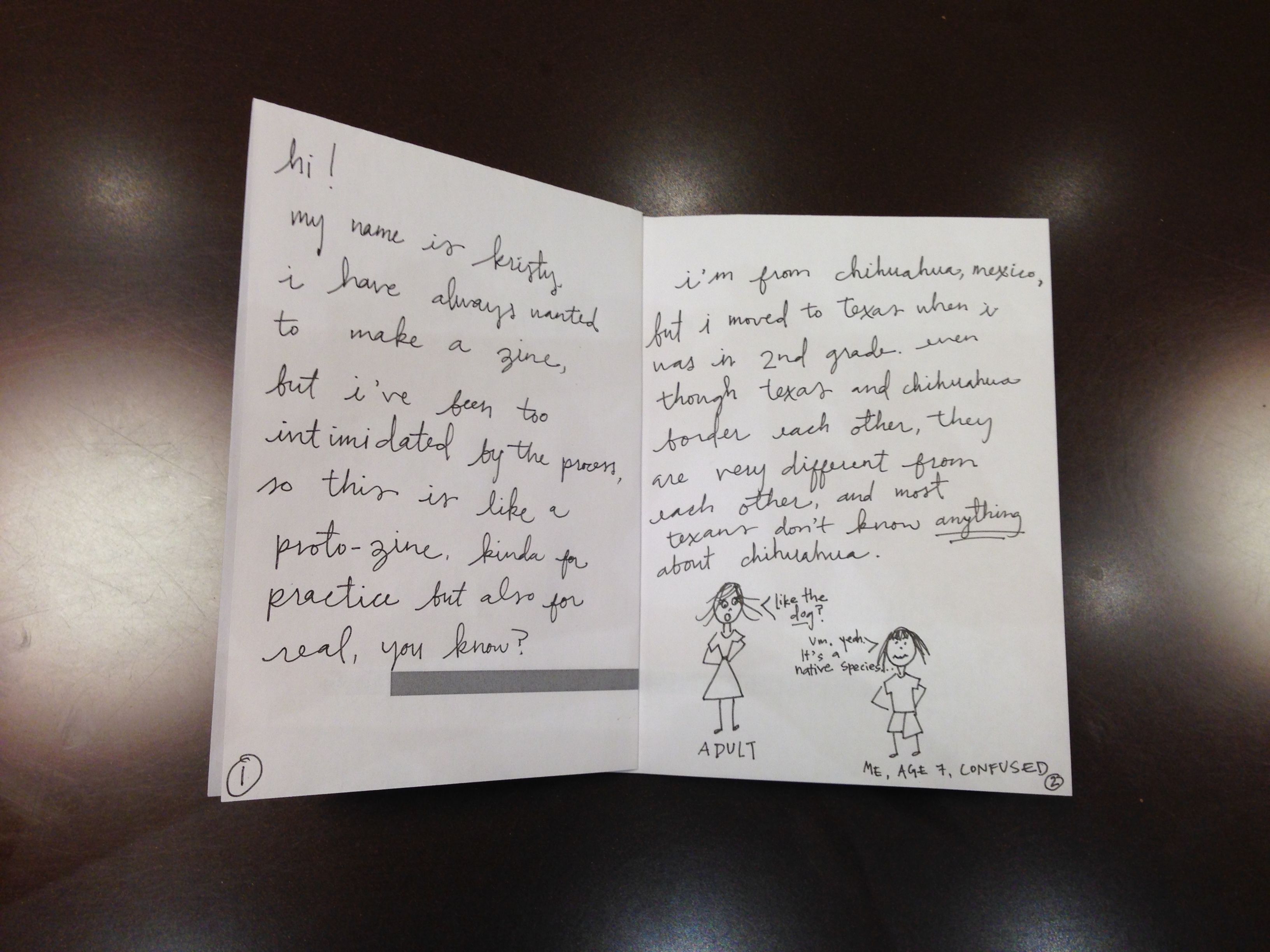Last night I went to a meetup for Rookie, and it ruled! Everyone was allowed to bring either clothes or a zine to swap, and I took it as the impetus to make my first zine. I’ve wanted to make one since I was 15, but it seemed like something really cool people who are not terrified of X-Acto knives did, so I always put it off––until yesterday when I couldn’t procrastinate any longer and just went for it.