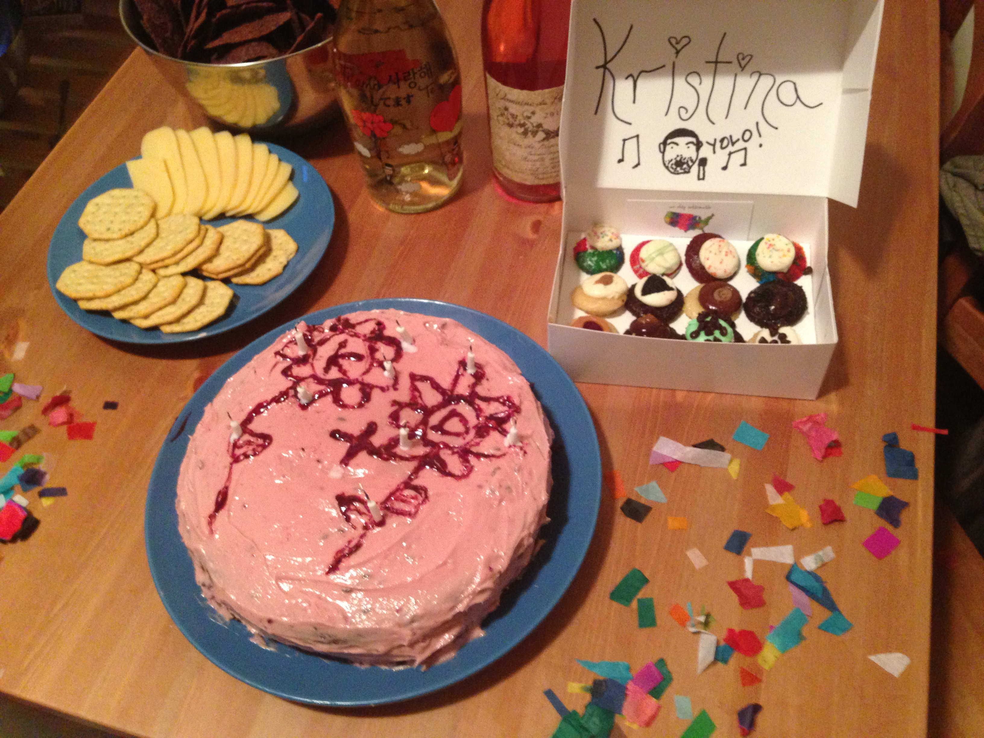 There were homemade streamers and confetti, a big lavender-blackberry cake and tiny thumbcakes, snacks on snacks on snacks, and Drake on the stereo. Then, we went out dancing, and we walked straight into my dream place, which Tasha, Devin, and I had tried to go to for my birthday but weren’t even allowed to stand in line! Then, we ate falafel with a hot sauce so spicy it made me sob. It was hands-down the best falafel I’ve ever had. Then, we had a sleepover and watched an episode of ‘The Newlywed Game’ from 1966 with a surprisingly feminist contestant who seemed to be very happily married! And finally, we went on an epic quest for my favorite New York City brunch that culminated in a free cab ride. The whole time I kept looking around and realizing, ‘My friends really, really know me. They understand me, and they like me!’